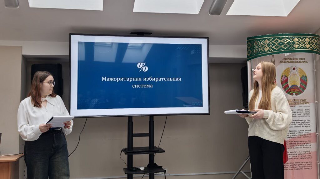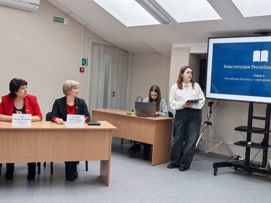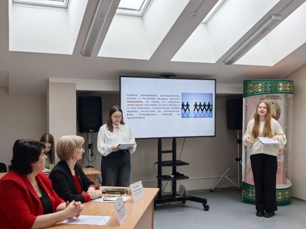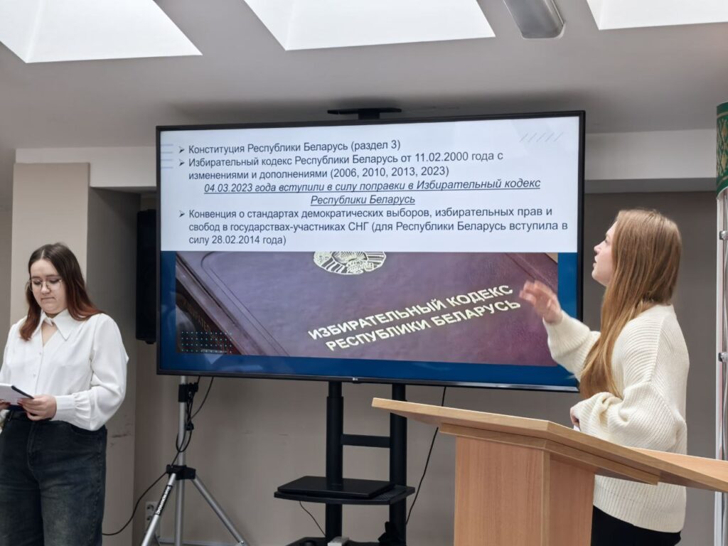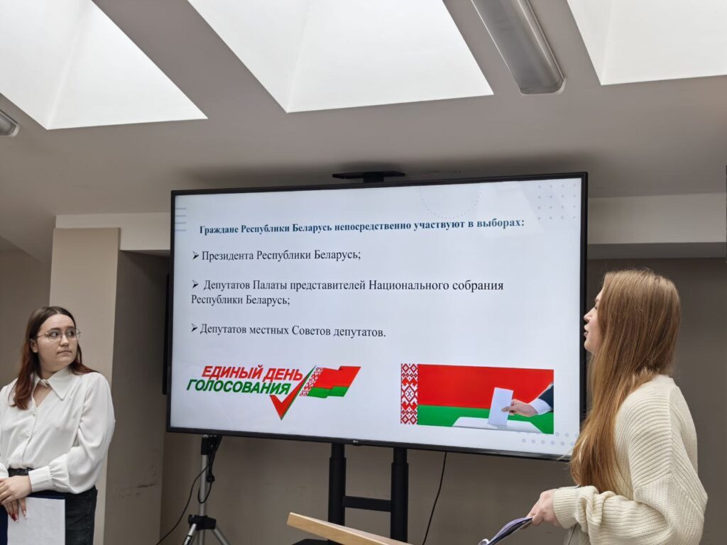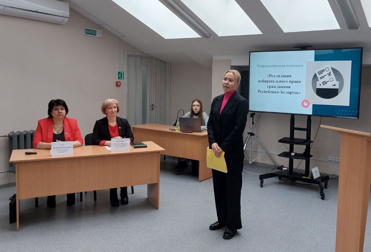 30.01.2026 в рамках информационной площадки «Реализация избирательных прав гражданами Республики Беларусь» состоялась презентация клуба электоральной грамотности молодёжи «Выбирать БУДУ!#ЩЕЕ», созданного на базе Брестского филиала частного учреждения образования «Колледж бизнеса и права». Руководитель клуба, Щетинкина Татьяна Владимировна, рассказала о самой идеи создания такого объединения как своеобразной площадки по подготовке будущих избирателей к самостоятельному и активному участию в общественно-политической жизни нашей страны. Татьяна Владимировна обратила внимание на важность системной работы по правовому воспитанию молодёжи, повышению уровня их правовой и электоральной культуры, что стало одной из важнейших целей деятельности клуба. В рамках проводимого мероприятия члены клуба электоральной грамотности выступили перед аудиторией с презентацией своего просветительского проекта «Основы избирательного права Республики Беларусь».