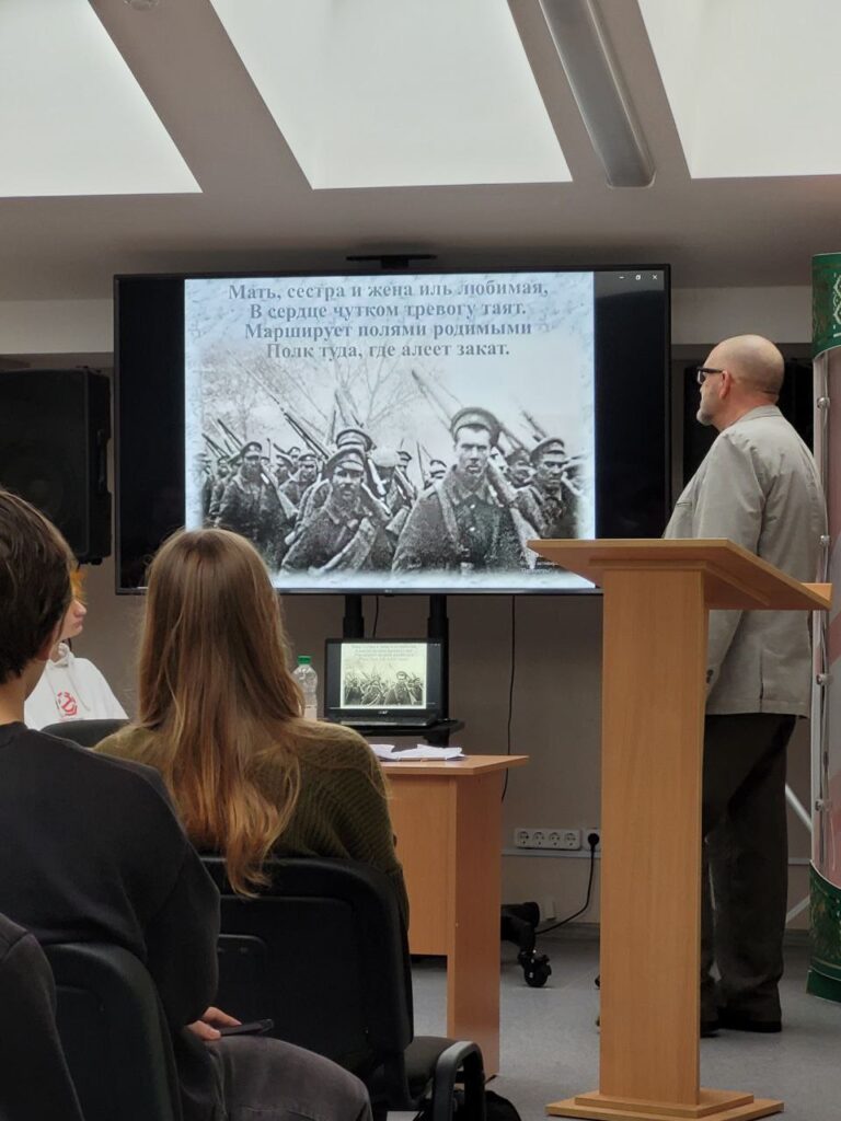 09.12.2025 состоялась встреча учащихся с подполковником в отставке Александром Константиновичем Теляковым, заместителем руководителя лекторской группы «Доблесть. Отечество. Честь» при Брестском городском Совете ветеранов. Тема лекции «Забытая война».